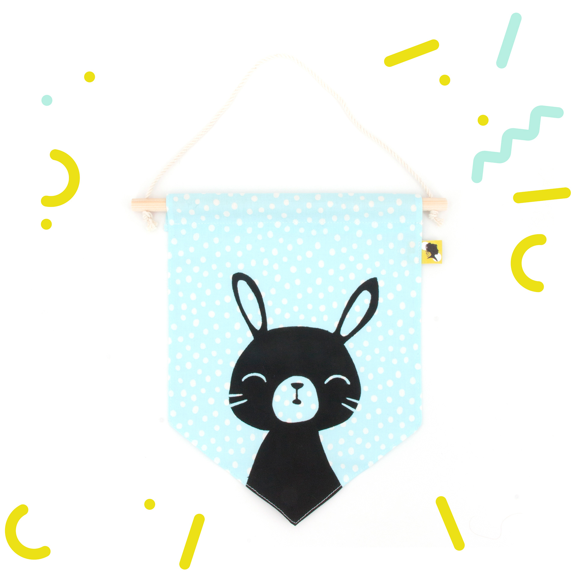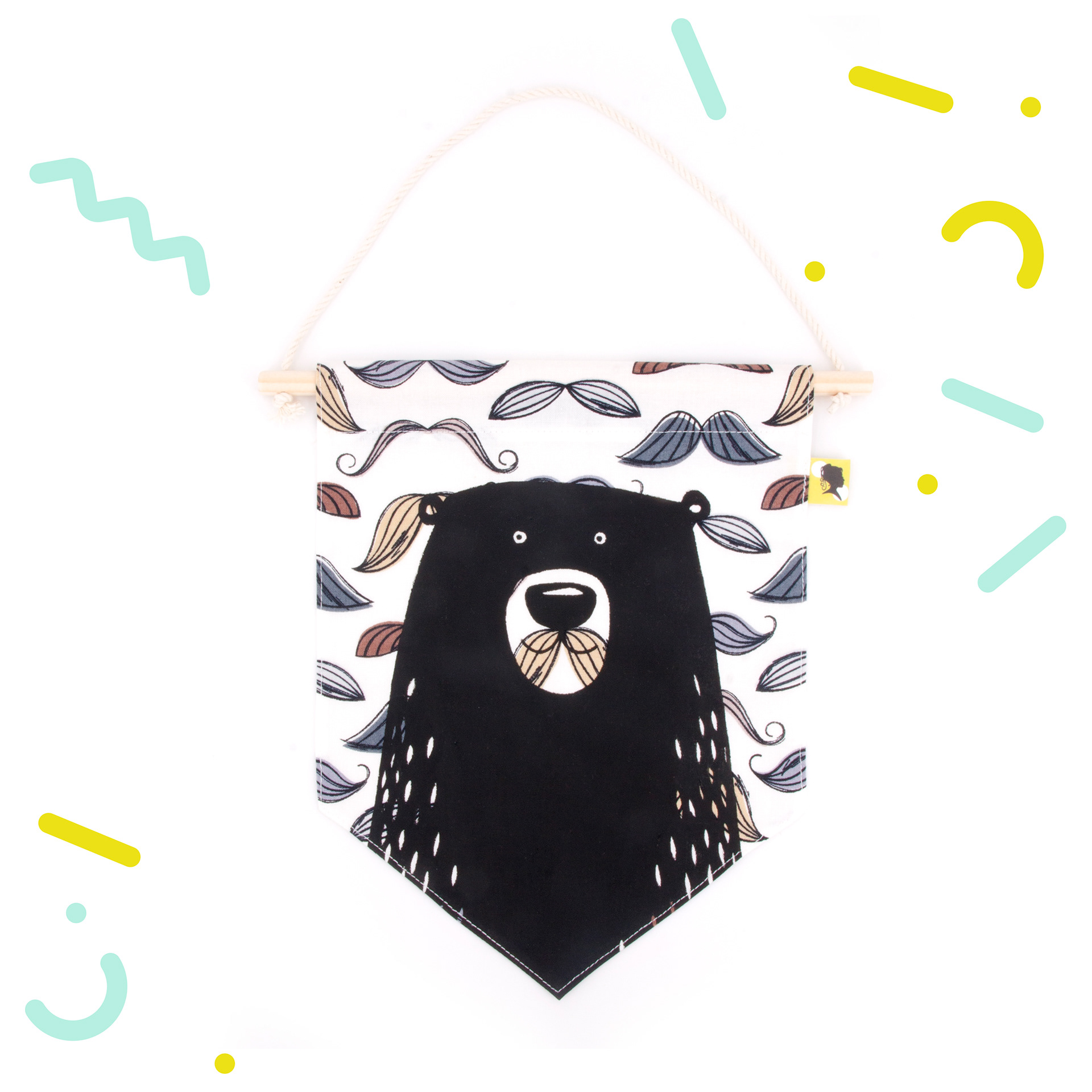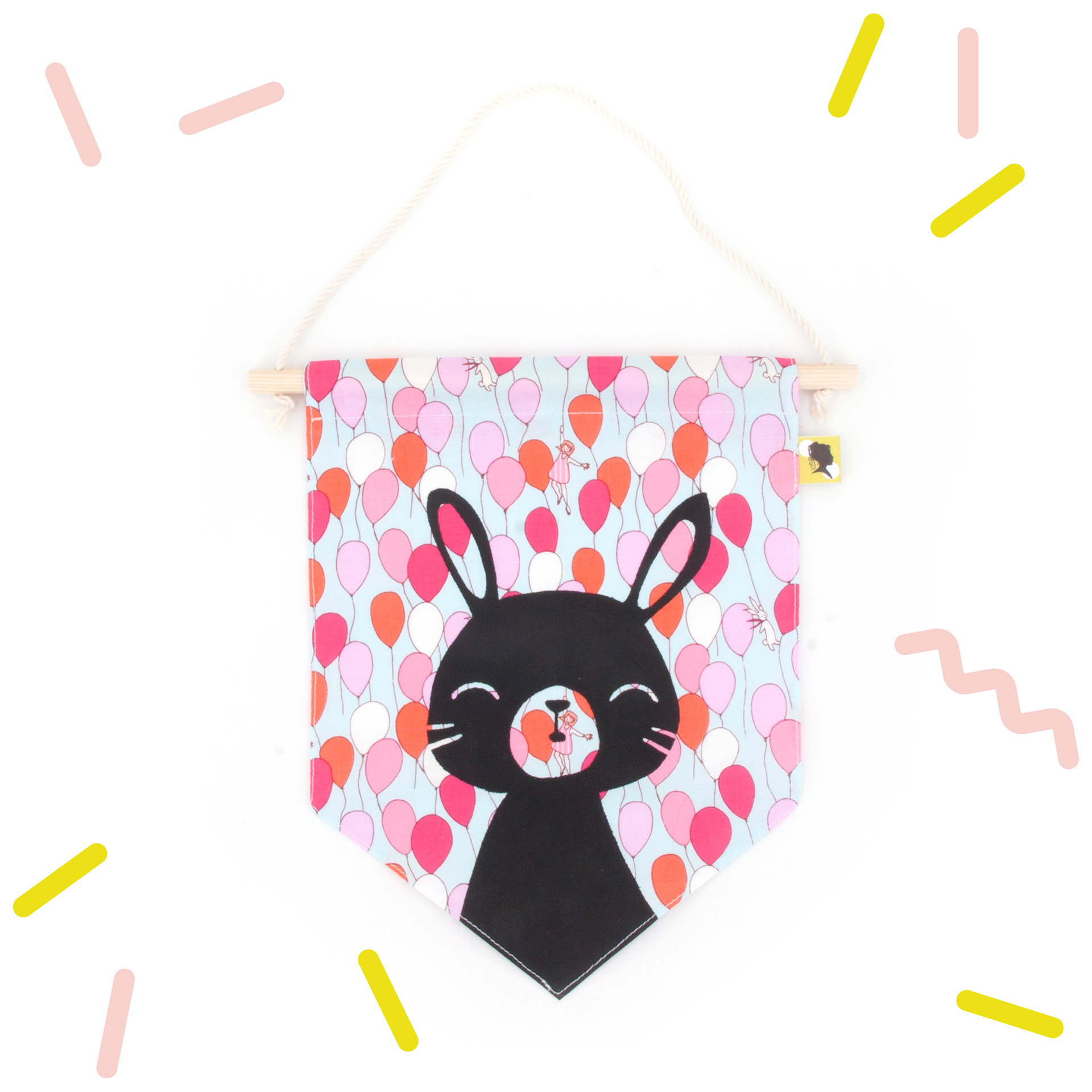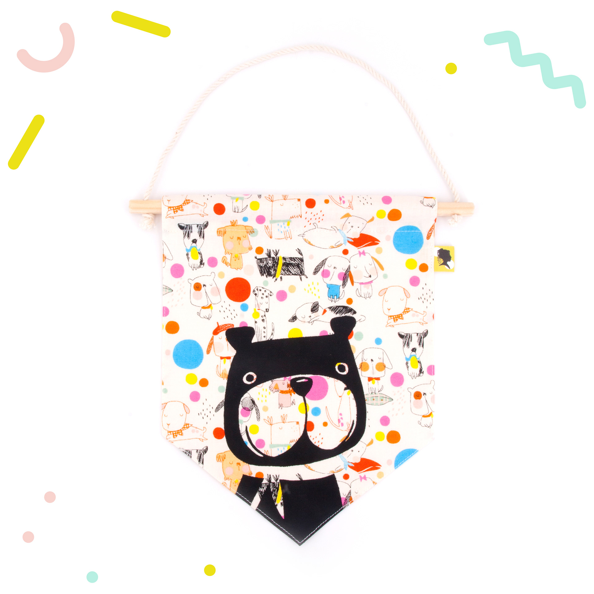 Décoration de chambre à accrocher en tissu. 💖 Décoratif ! Ce fanion s'accroche au mur ou à la porte de la chambre de Bébé et permet d'avoir une jolie décoration pour s'inventer des histoires et développer son imagination. Un cadeau de naissance original et fabriqué avec amour ! 🌟 Fait-main avec un joli tissu 100 % coton. Lavable en machine en retirant la partie bois. 📏 Dimensions : Partie tissu : L 18 x H 23 cm
