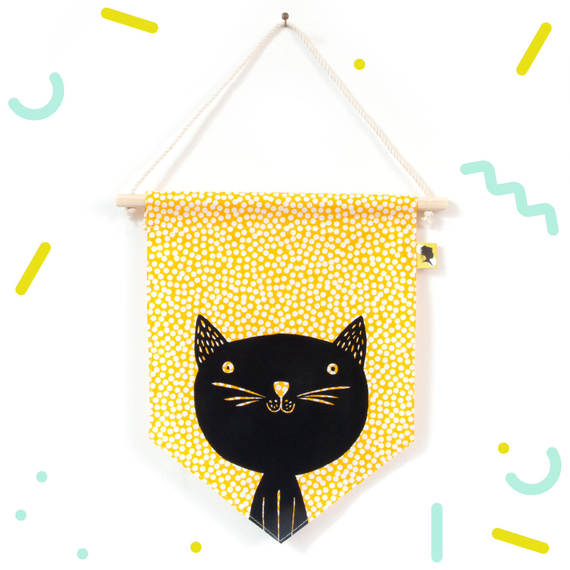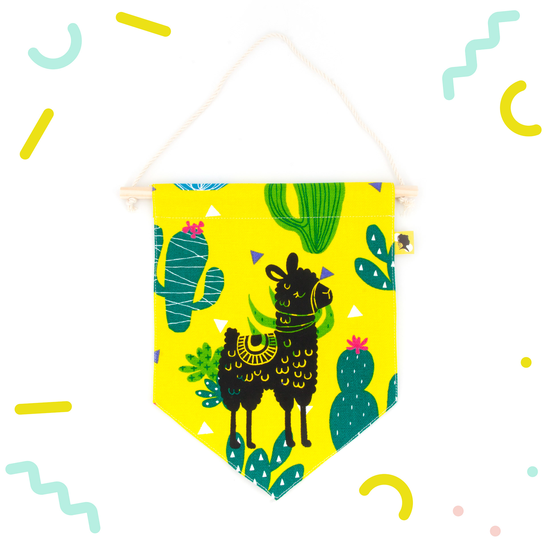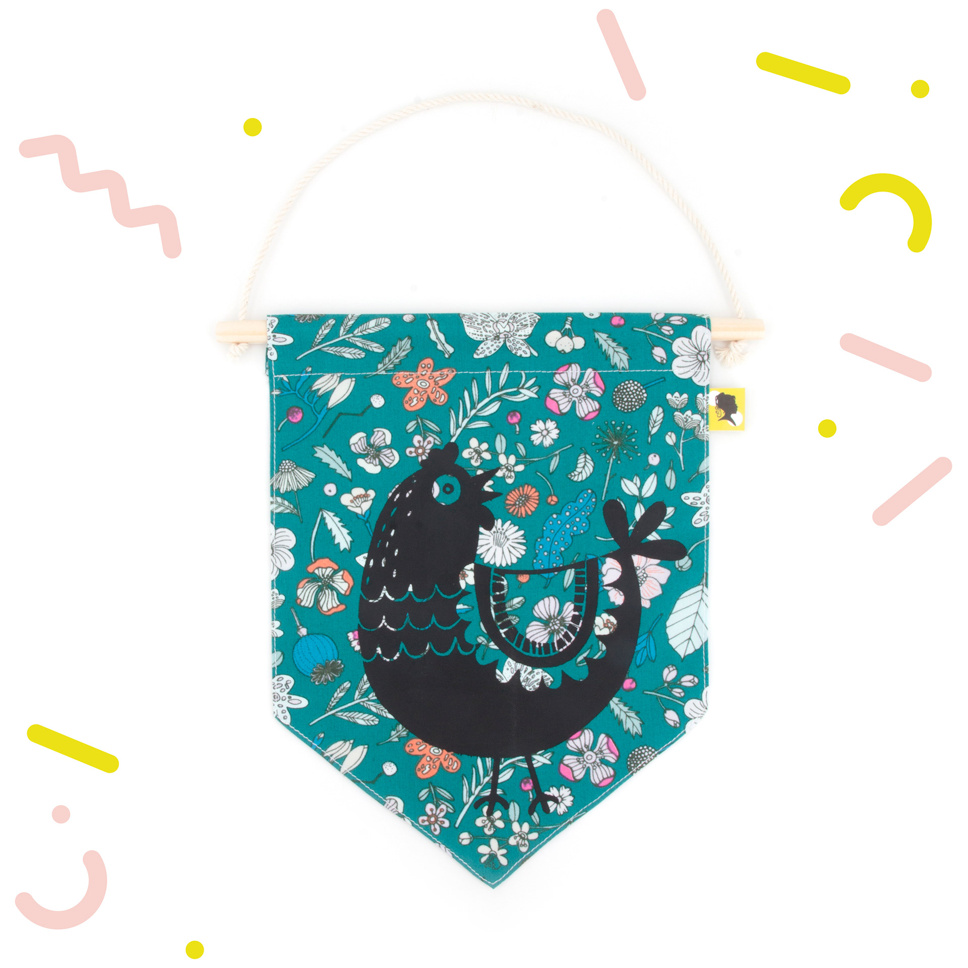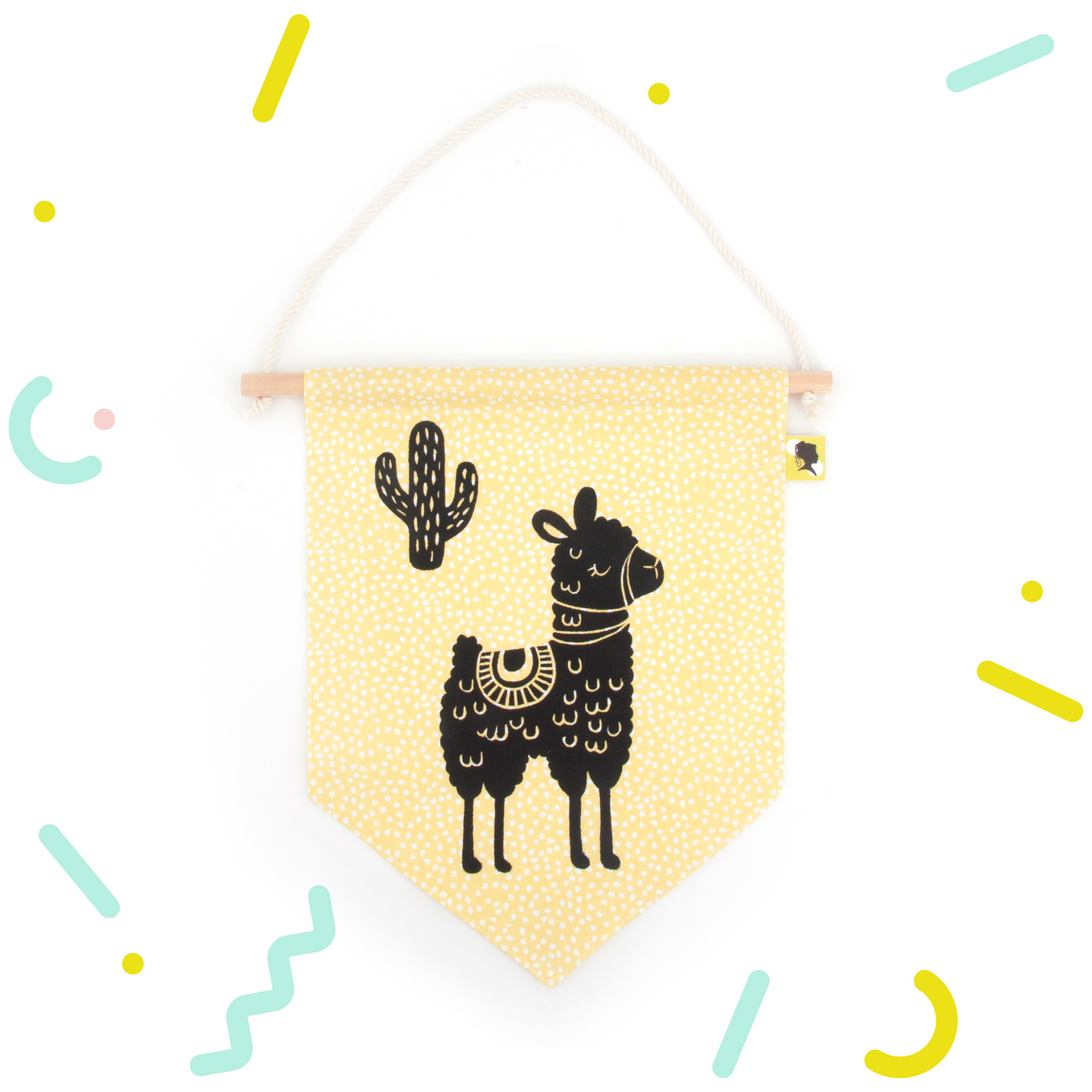 Décoration de chambre à accrocher en tissu. 💖 Décoratif ! Ce fanion s'accroche au mur ou à la porte de la chambre de Bébé et permet d'avoir une jolie décoration pour s'inventer des histoires et développer son imagination. Un cadeau de naissance original et fabriqué avec amour ! 🌟 Fait-main avec un joli tissu 100 % coton. Lavable en machine en retirant la partie bois. 📏 Dimensions : Partie tissu : L 18 x H 23 cm