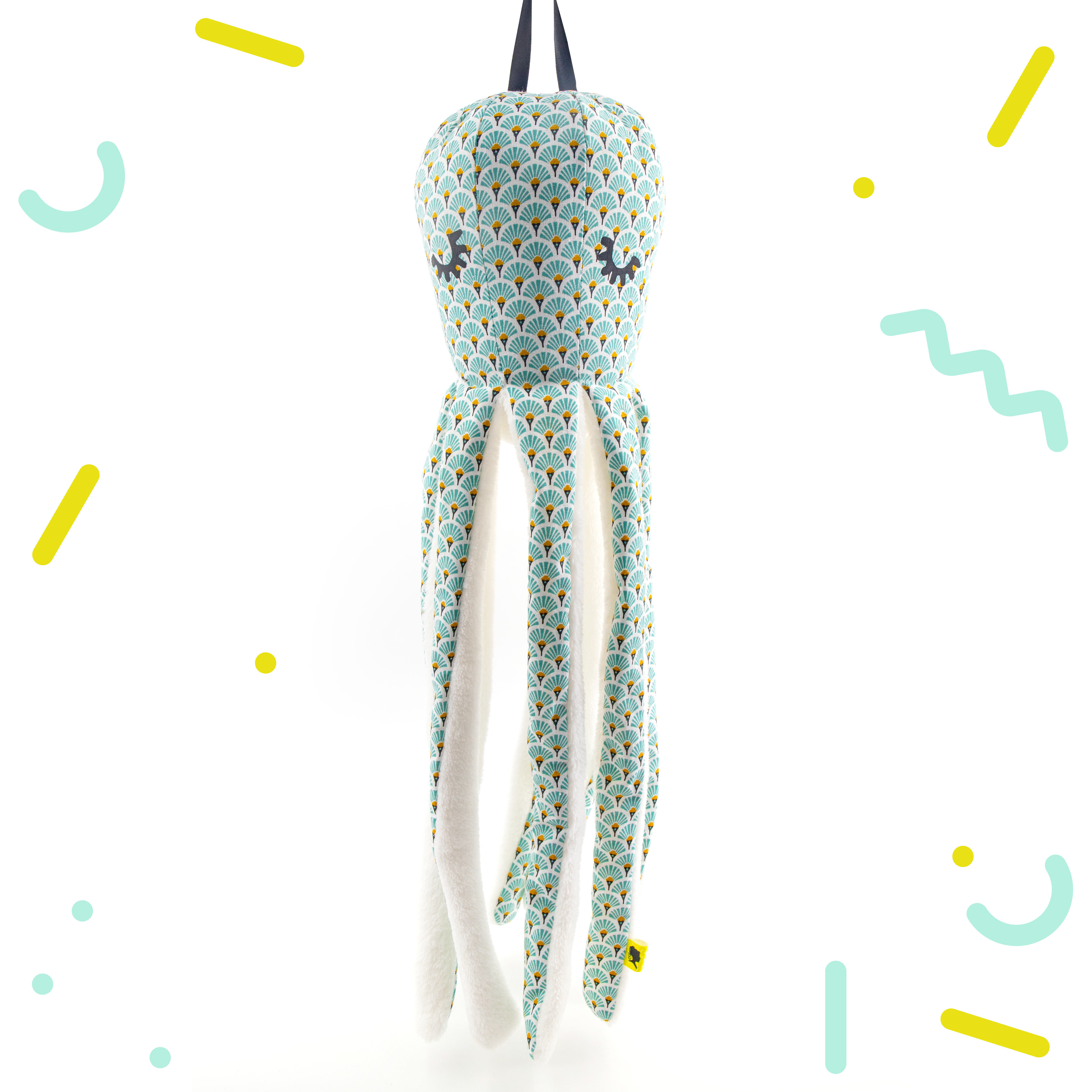 Doudou Octopus doux et coloré. 🌟 Fait-main avec soin : Évadez-vous avec ce jouet en peluche Pieuvre trop mignon ! Une pièce unique faite à la main ! Cette peluche octopus est méticuleusement confectionnée à partir de coton pour le dessus et de polaire pilou très douce pour le dessous, garantissant une expérience tactile délicieuse. Chaque peluche est fabriquée avec amour avec une attention aux détails et des matériaux de qualité supérieure. Parfaite pour câliner ou comme décor océan dans la chambre de bébé ou encore comme cadeau sur le thème de la mer. 🌟 Matériaux haut de gamme : Fait-main en 100% Polyester polaire pilou, extra douce et un joli tissu 100 % coton coloré. Les yeux sont tamponnés à l'encre textile, aucune bille n'est utilisée. Rembourrage anti-allergène spécial peluche. Lavable en machine. 📏 Dimensions : Largeur 13 x 13 cm x Hauteur 51 cm